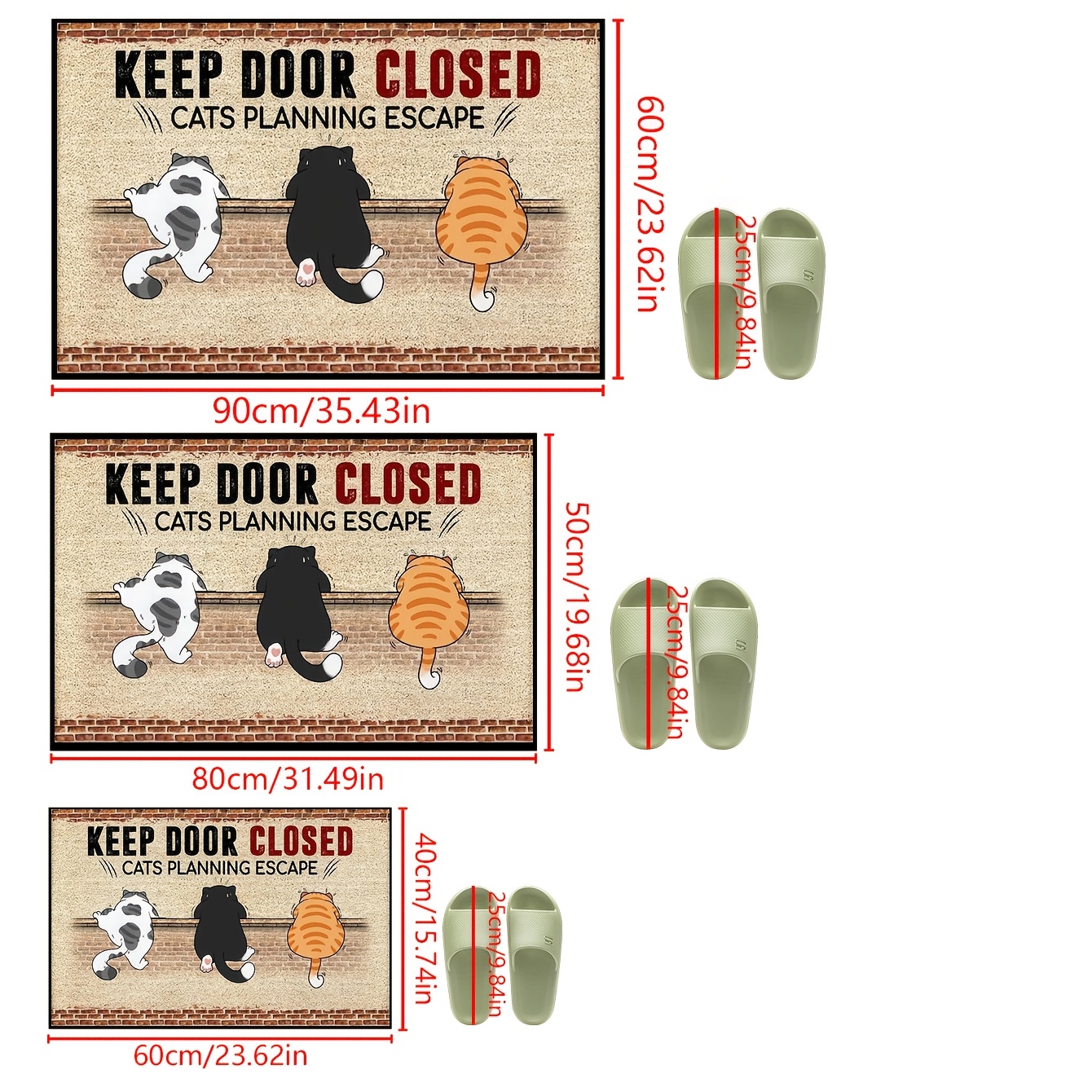 1pc Cute Cat Warning Mat - "KEEP DOOR CLOSED CATS PLANNING ESCAPE" Design, Non-Slip, Machine Washable, Polyester Fiber, Ideal for Kitchen, Bedroom, Living Room Entrances, All-Season Use, Pet Safety Mat | Playful Cat Design |